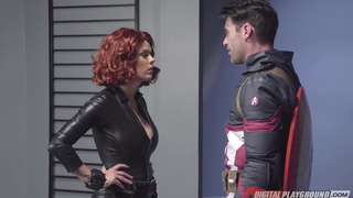 Black Widow is forced to pick sides as the feud between Captain America and Iron Man heats up. In spite the stunning Russian belongs to the opposing team, she decides to help this handsome ex-nerd escape, but in exchange she wants his super soldier spooge all over her enormous jugs. What better proof that you are in the right universe - the porn one?