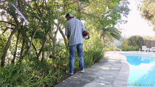 Vanessa is one hot milf. She's been hanging out around the pool all day watching her gardener. She's got a hunch that he owns a big dick, so when he fucks up her lawn one too many times, she knows just how he can redeem himself. I'll give you a hint...it's with sex.
