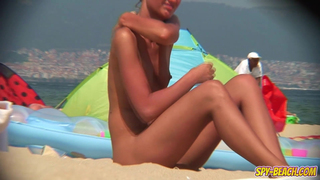 Amateur Beach Nudist Voyeur - Close Up Shaved Pussy