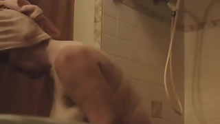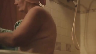 grandma changing in bathroom on hidden cam showing nice boobs