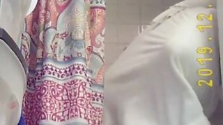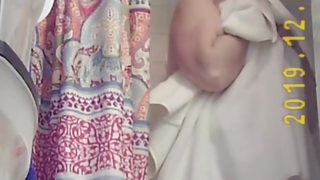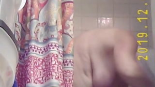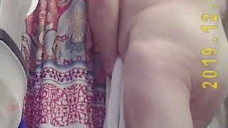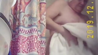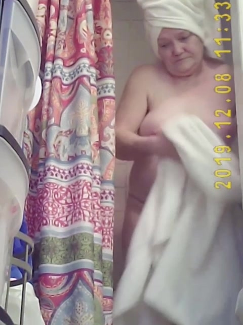 Watching unexpected grandma exposing nice big sassy tits as she walks around naked
