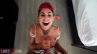 Slpit Tongue Blowjob From A Tattooed Babe