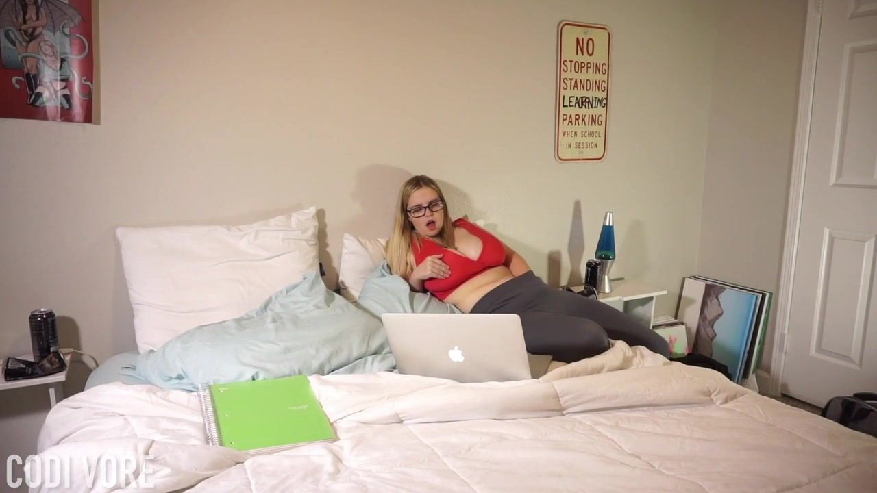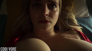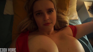 La bionda Codi Vore, con le sue grandi tette da latte, gioca con la sua figa e geme mentre viene sborrata