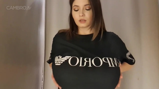 La bruna con le tette grosse posa in topless davanti alla telecamera, solo per divertimento