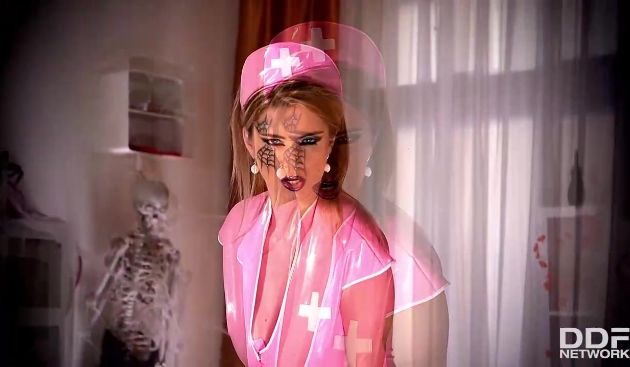 All'infermiera cattiva piace vestirsi in modo sexy per Halloween e giocare con se stessa mentre è al lavoro