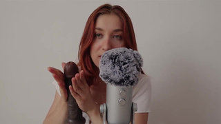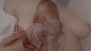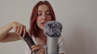Red haired girl is rubbing a big, black dildo during an exciting, ASMR JOI session