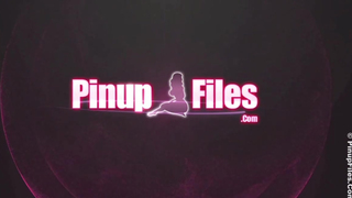 Amazing brunette with big tits is posing in a golden swimsuit and doing some very naughty stuff
