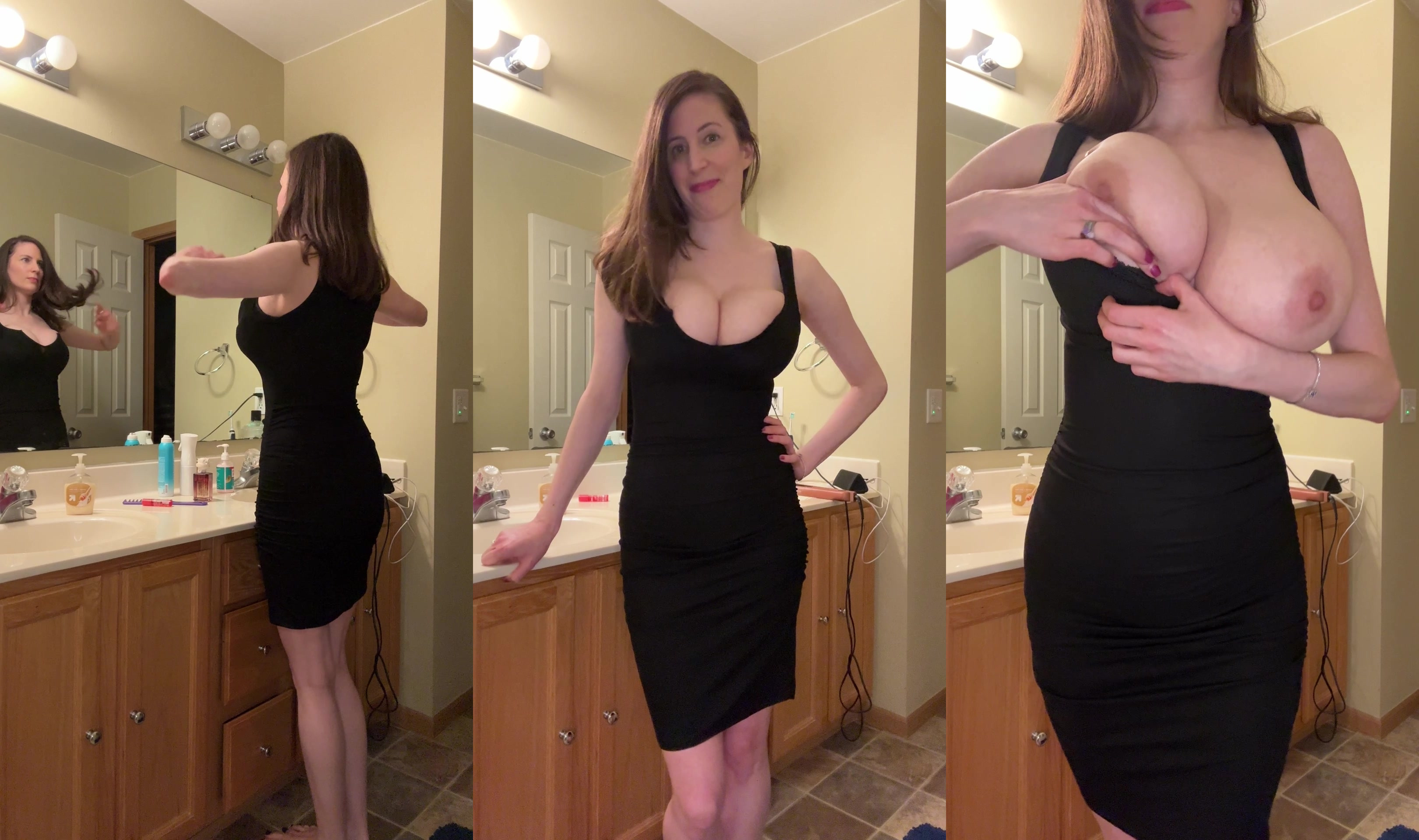 I’m getting ready for my hot date, I’ll be back late tonight or if things go well, tomorrow… oh are you jealous I’m going on a date? I see you’re getting hard… how about a quickie jerk your cock for me before my date. I know it’s kind of inappropriate but it’s ok, I want you to stroke your cock to my big tits. (I never specify our relationship, you can decide for yourself)
